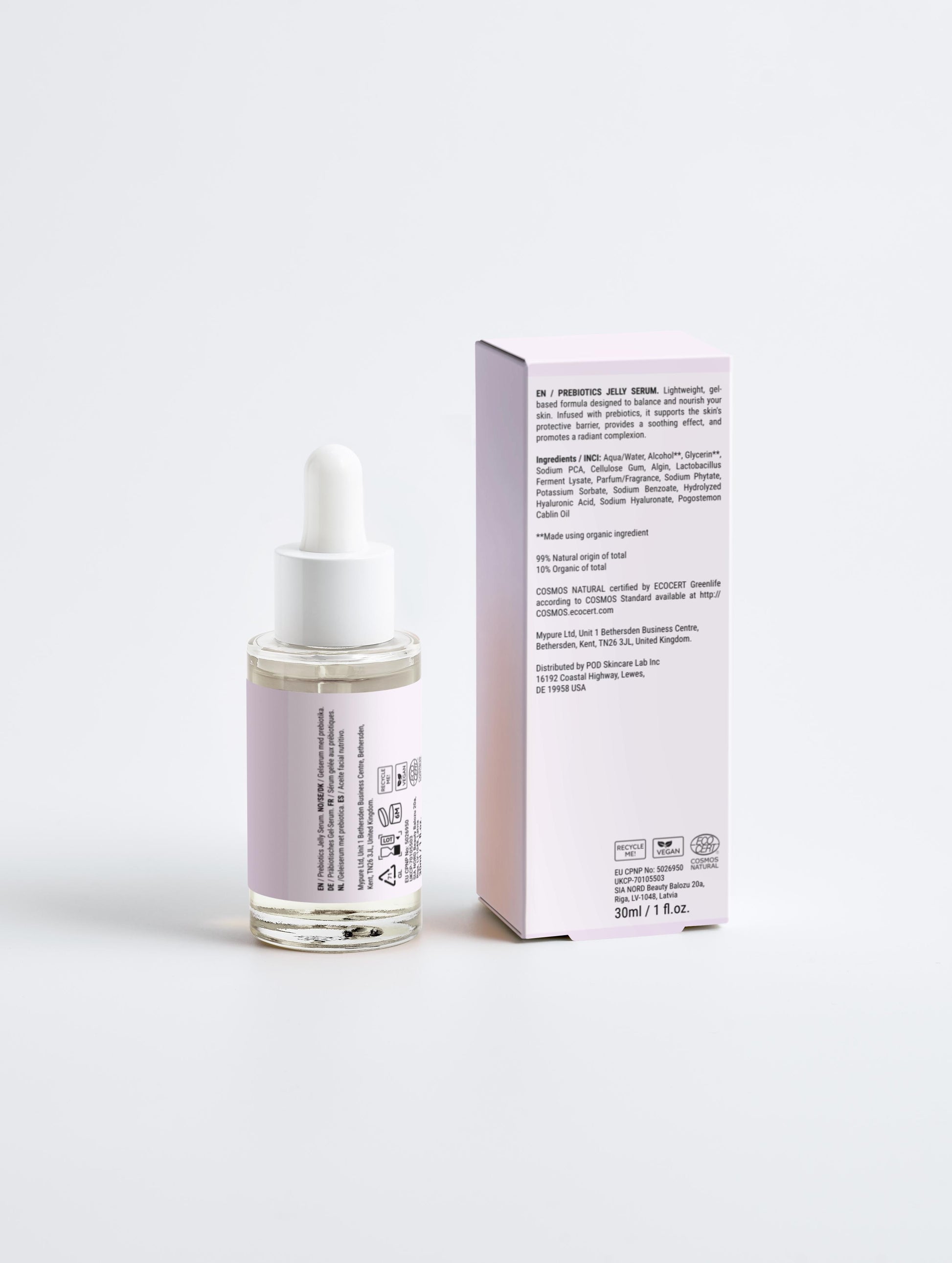 Breng je huid terug in harmonie met het Seryn Bioactive Prebiotics Jelly Serum — een verfrissend, gelachtig serum dat de natuurlijke huidbarrière versterkt en de balans van het microbioom herstelt.